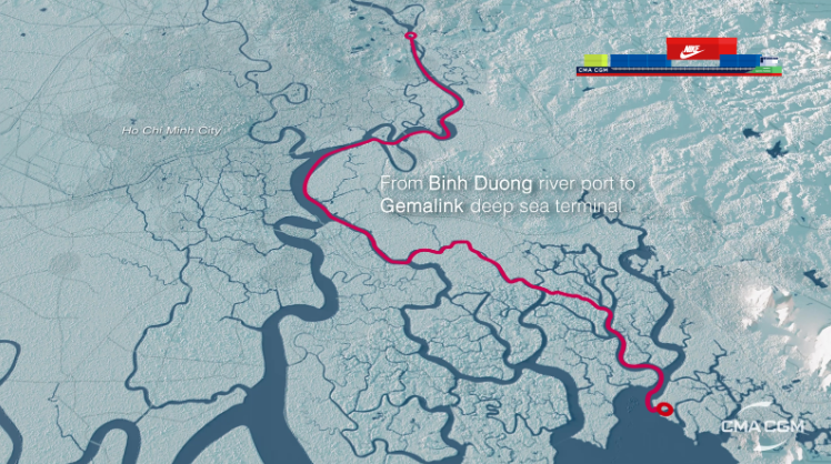 NIKE, a long-time customer of CMA CGM, is the first partner to commit to using the electric barge for its logistics flows between its Vietnam-based manufacturing sites and the Gemalink container terminal.