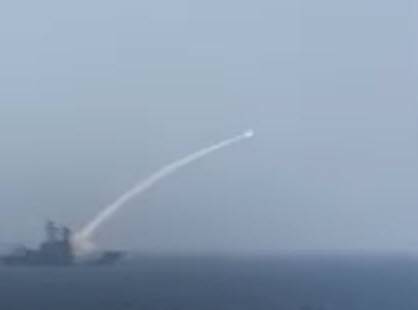 The defence ministry released footage of the frigate launching the missiles.